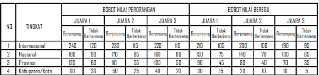 1. paling banyak 3 sertifikat/piagam bagi yang memiliki pada tingkat internasional, tingkat nasional, tingkat provinsi, dan/atau tingkat kabupaten/kota yang diterbitkan paling lama 3 (tiga) tahun (diperoleh selama calon murid menempuh pendidikan di SMP/MTs atau sederajat) sejak tanggal pendaftaran penerimaan murid baru;
